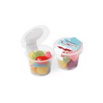 Mini plastic free eco pot, filled with Jolly Beans. Branded with a full colour paper wrap. These pots are made from plant based materials rather than plastic. Once enjoyed they can be disposed of in commercial food waste recycling to compost.